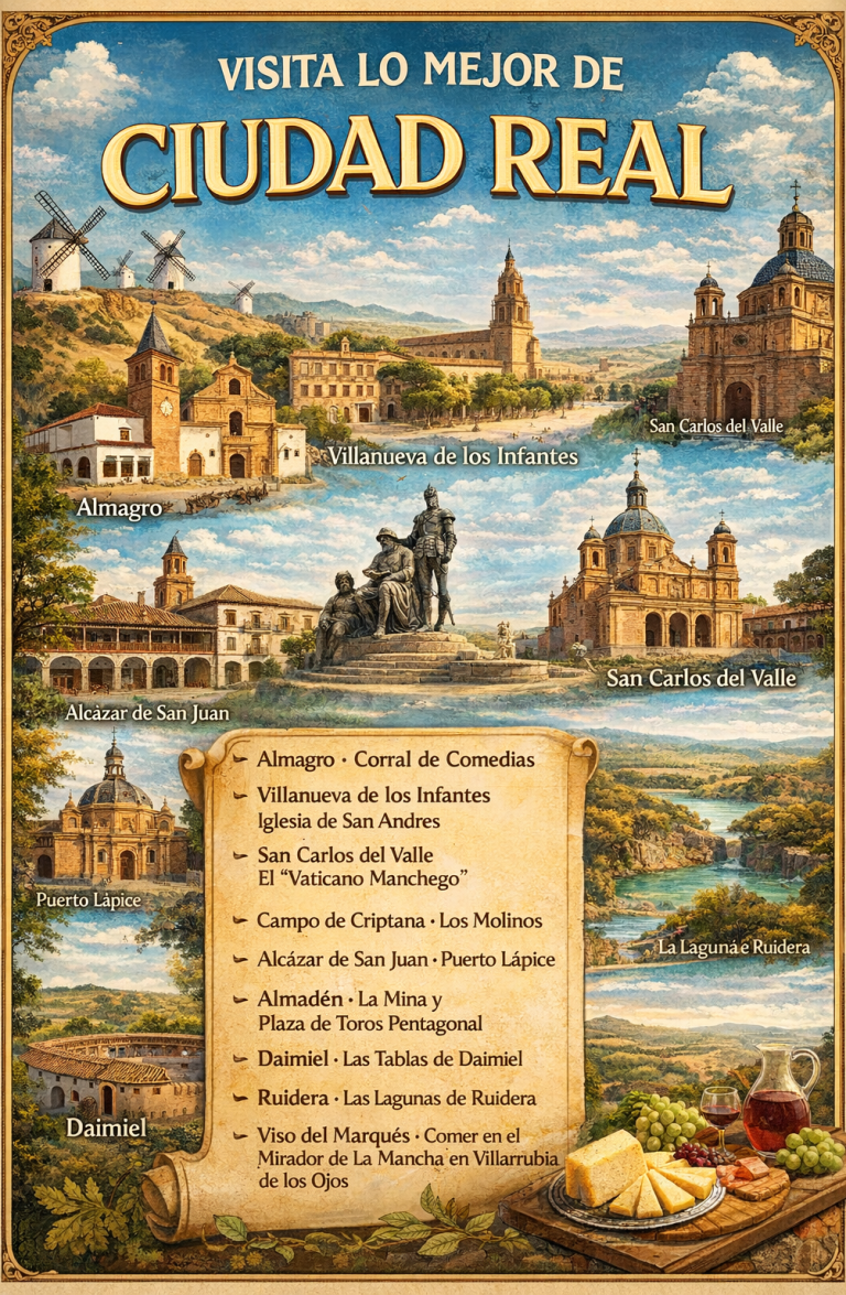 Descubre la esencia de Castilla-La Mancha a través de un viaje cultural que combina historia,naturaleza y tradición cervantina.